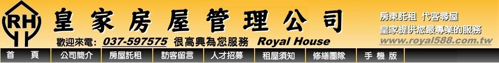 皇家房屋管理公司:苗栗縣頭份市中華路534號  臉書粉絲頁:https://www.facebook.com.tw/royal588